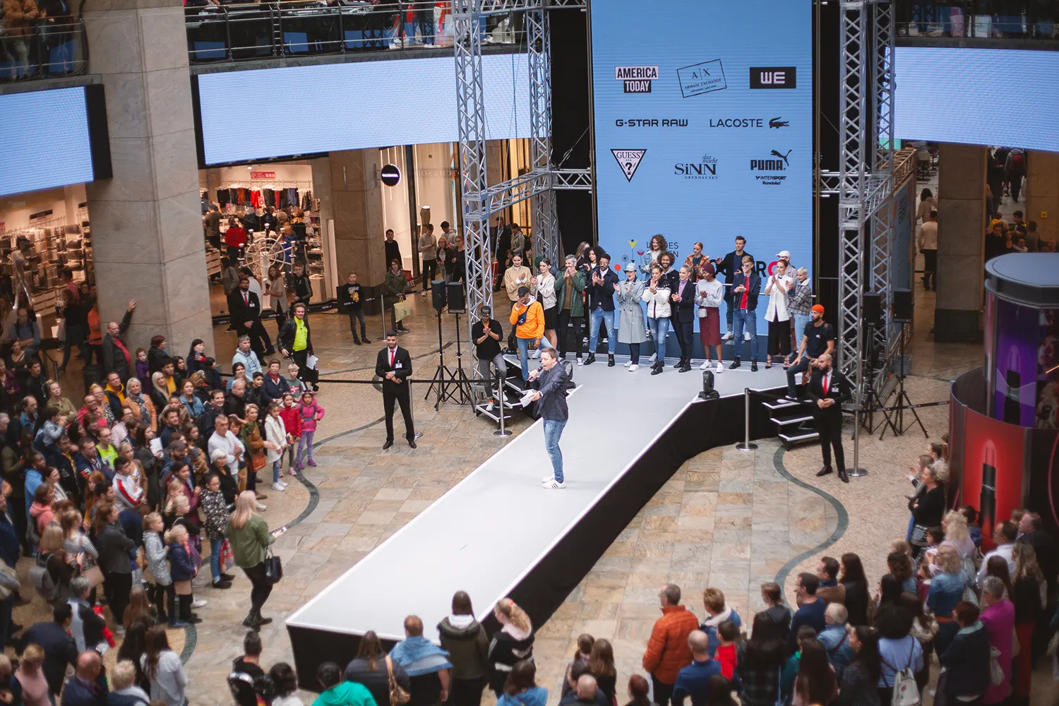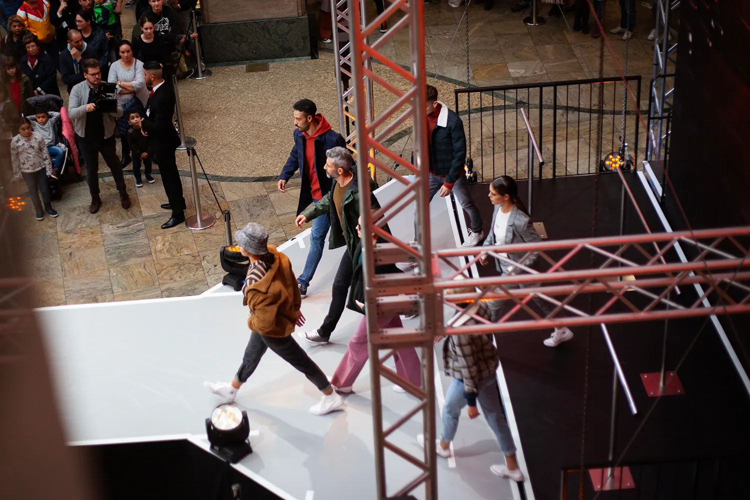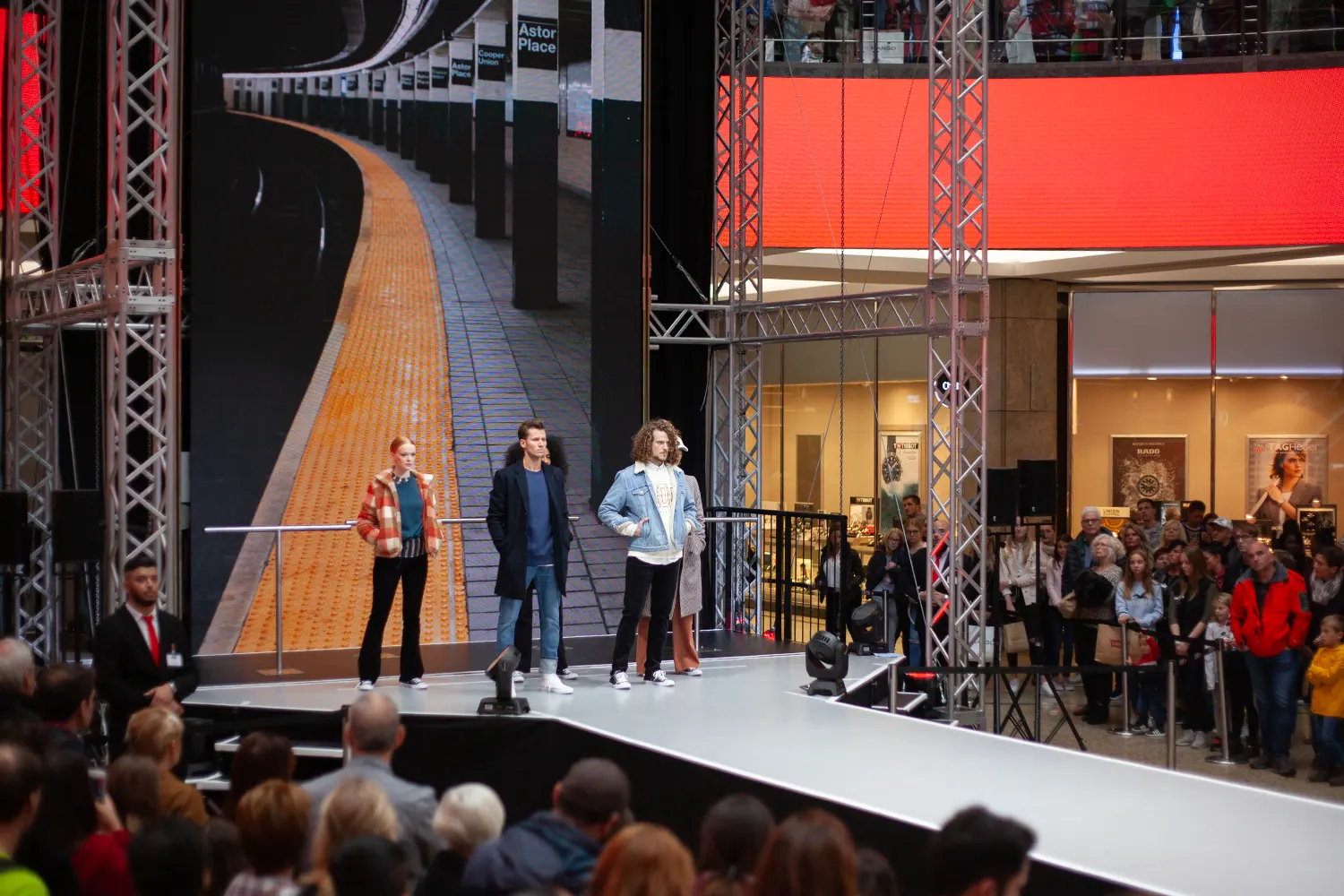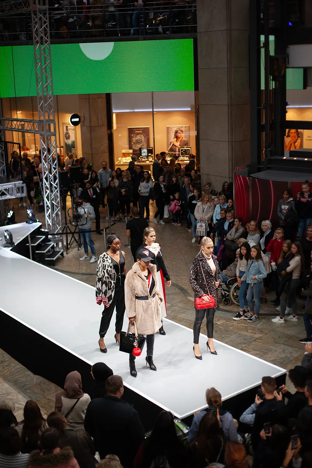 Steht der Raum in der Breite nicht zur Verfügung, gehen wir in die Höhe: Mit einem 10 Meter hohen Aufzug inklusive LED-Wand wurden Brands und Models einzigartig in Szene gesetzt. Das Ganze live vor einem staunenden, begeisterten Publikum.