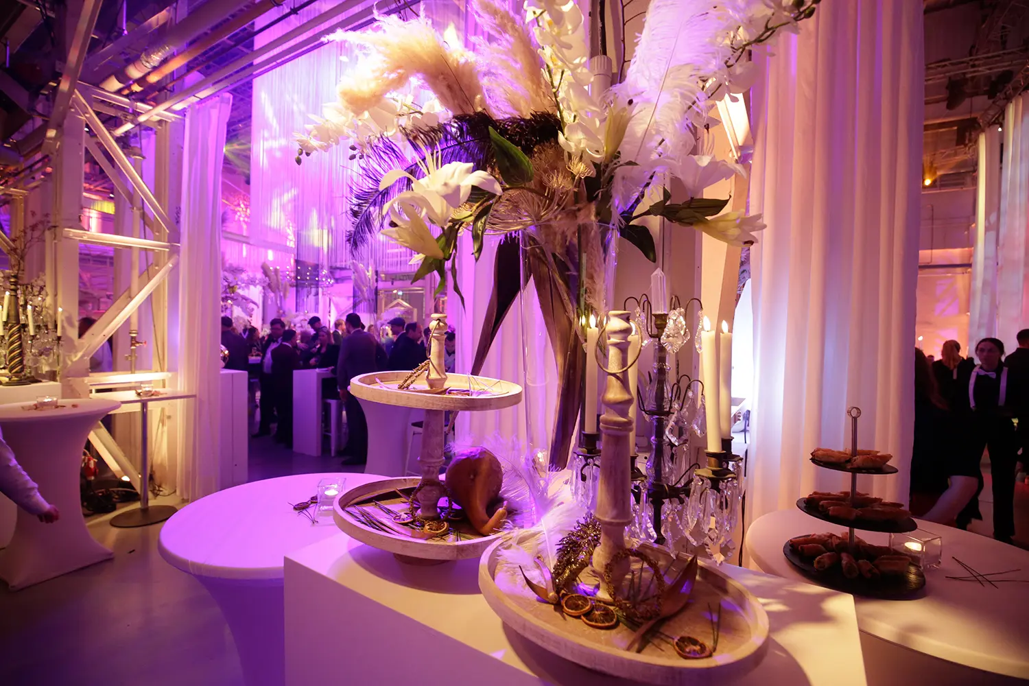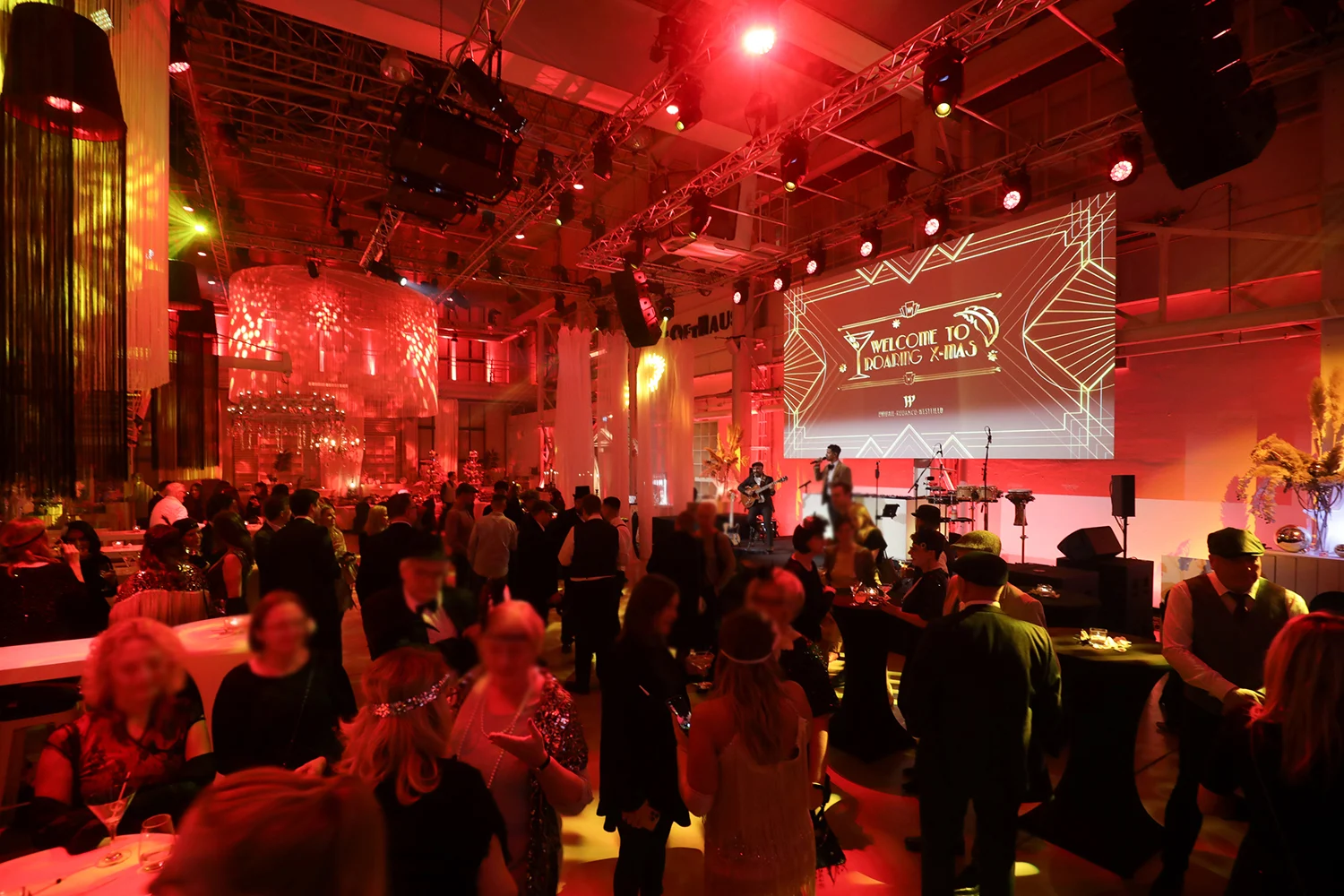 Unter dem Motto „A Roaring Xmas“ schuf iventos eine faszinierende Kombination aus dem Flair der 1920er Jahre und der festlichen Weihnachtsatmosphäre. Die Gäste wurden eingeladen, in eleganter Abendgarderobe die Welt der Roaring Twenties zu erleben. Mit einer stilvollen Art-Deco-Dekoration, gepaart mit festlichen Elementen, entstand eine unvergessliche und dynamische Atmosphäre, die das Event in besonderem Glanz erstrahlen ließ.